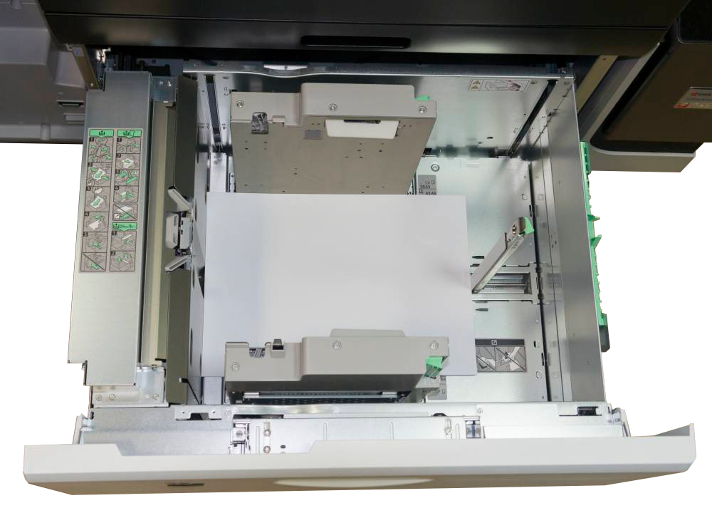 Благодаря минимальным требованиям к обслуживанию, большому межсервисному интервалу и возможности «горячей» замены емкостей с чернилами TASKalfa Pro 15000c способна обеспечить выполнение больших объемов работ в самые сжатые сроки без увеличения затрат и ущерба для качества. В максимальной конфигурации суммарная емкость подающих лотков достигает 14 тыс. листов.