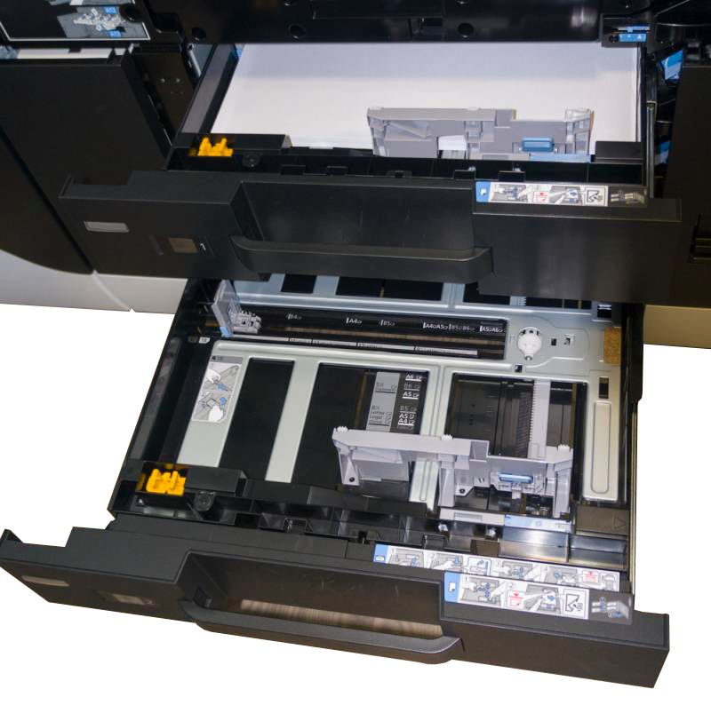Тандемные лотки подачи носителей формата А4 в центральном модуле