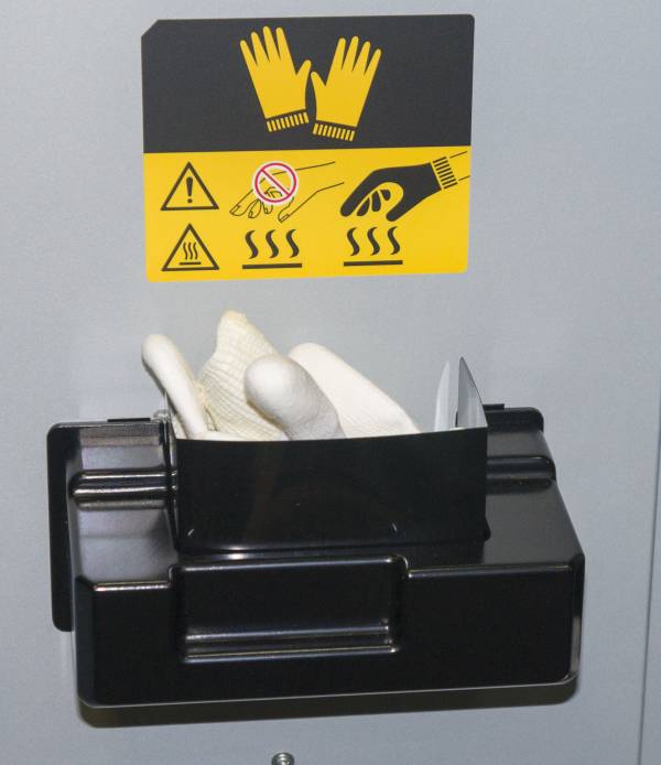 Кармашек с защитными перчатками на внутренней стороне дверцы