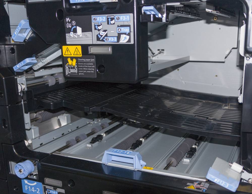 Как и большинство ЦПМ промышленного класса, TASKalfa Pro 15000c имеет модульную конструкцию. Такой подход максимально гибко конфигурировать устройство, добавляя лотки подачи носителей, модули финишной обработки и другие элементы для того, чтобы достичь наиболее полного соответствия требованиям заказчика и специфике выполняемых работ.