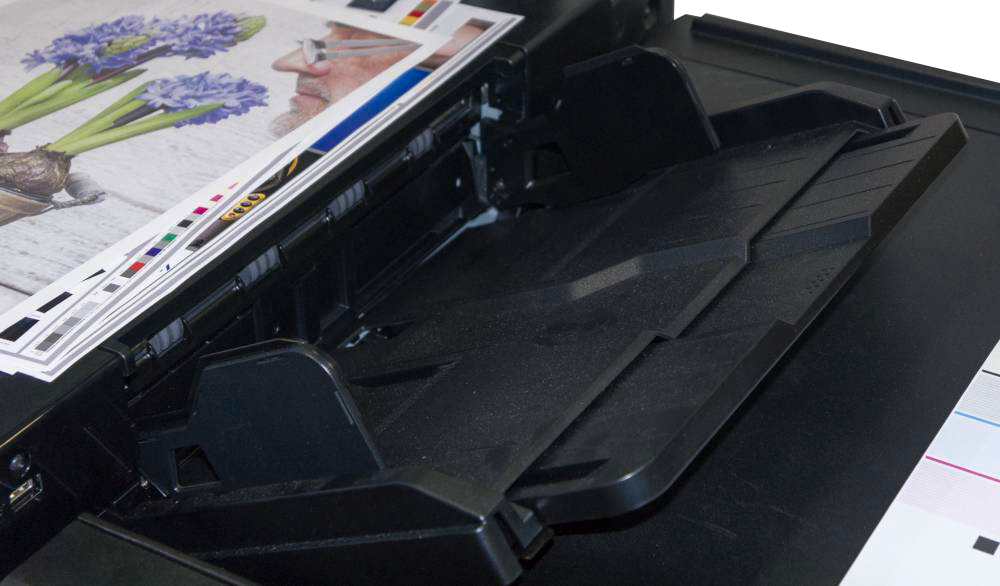 Чтобы проверить состояние дюз печатающих головок, достаточно вывести контрольный шаблон и отсканировать его. Если какие-либо дюзы печатающих головок всё-таки засорятся, предусмотрена трехступенчатая процедура очистки. В самом крайнем случае можно задействовать режим замещения неисправной дюзы соседними.